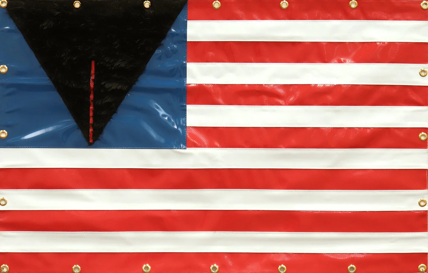 Bandera púbica Estados Unidos. 2019. Vinil intervenido. 99 x 67cm